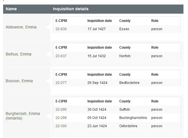 - Inquisitions Post Mortem are cited from Mapping the Medieval Countryside [online]. Available at http://www.inquisitionspostmortem.ac.uk/ (accessed: (access date)), and take the form eCIPM [volume no.]-[inquisition no.]