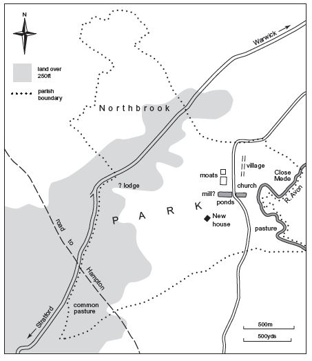 A further indication of the way that the landscape was remodelled is provided by the IPM's reference to 140 acres of pasture near the road to Hampton Lucy which was worth nothing (to the lord) as it was used as common pasture. The ‘road to Hampton' cannot mean the modern road leading south from the moated manor, as there is no room for 140 acres between the river Avon, Hampton Wood, and the ‘new house', but the road mentioned must have been the now defunct route which ran through the south-west corner of the parish, leading from the direction of Norton Lindsey. [20. VCH Warwickshire iii.91.] The more direct route, which must have existed when the village of Fulbrook was active, was presumably closed when the park was made. As Fulbrook was virtually uninhabited, the common pasture in the south-west would have benefited the villagers of Hampton and Snitterfield.